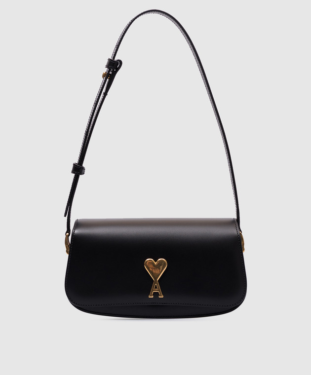 Черная кожаная сумка-багет с металлической эмблемой Ami de Coeur