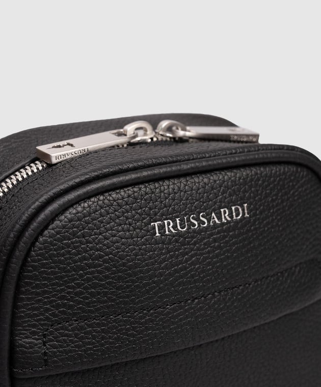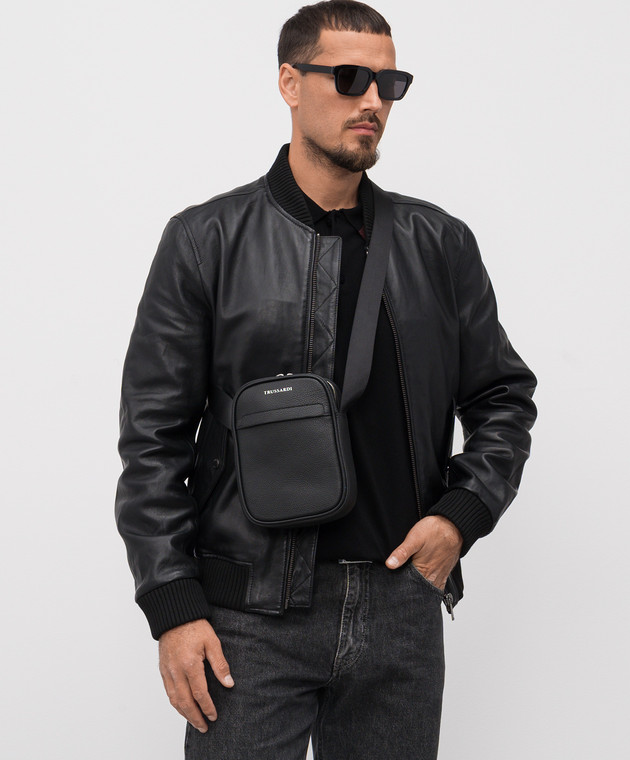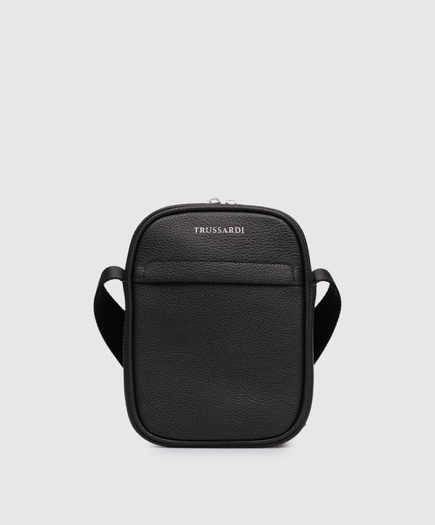 Черная кожаная сумка кросс-боди с принтом логотипа