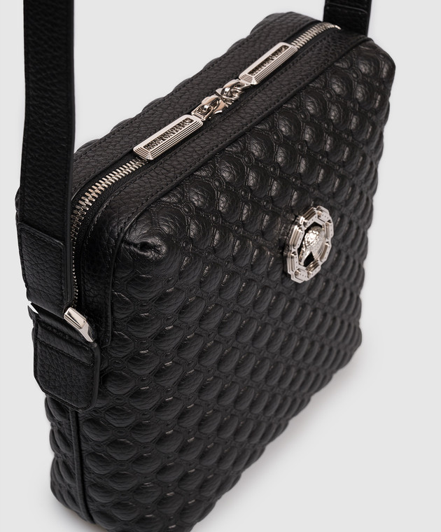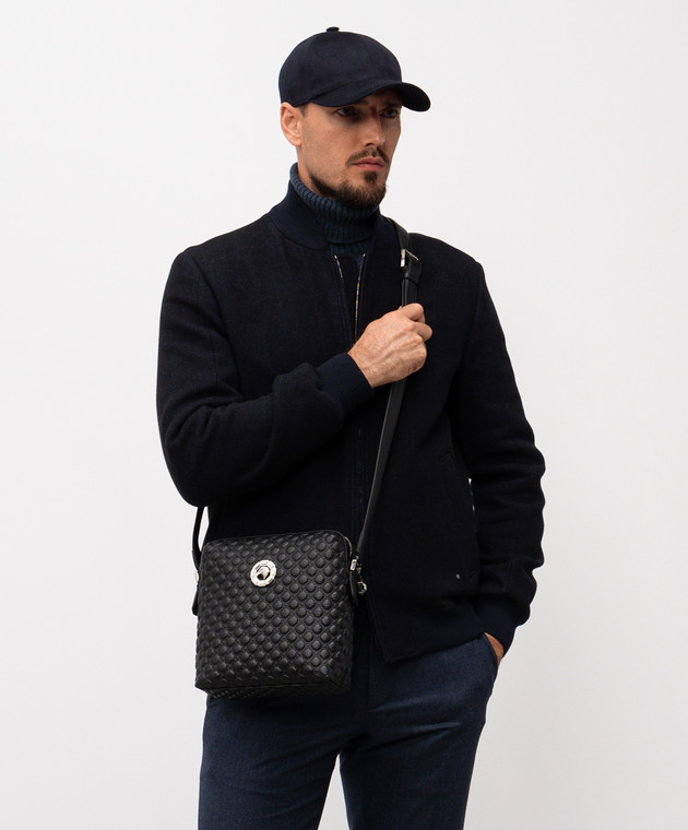 Черная кожаная сумка с эмблемой с палладиевым покрытием