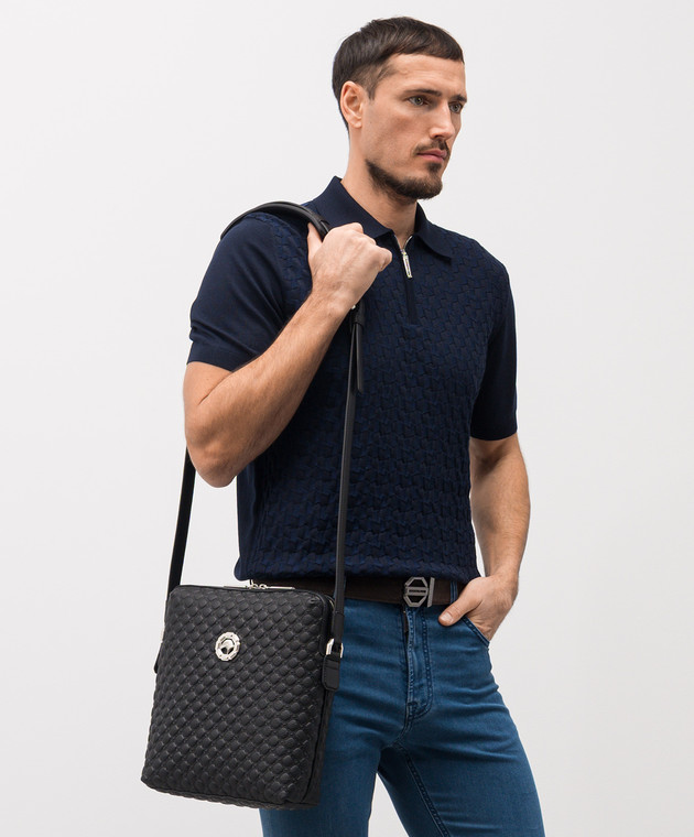 Черная кожаная сумка с эмблемой