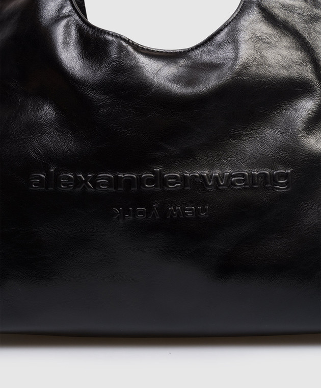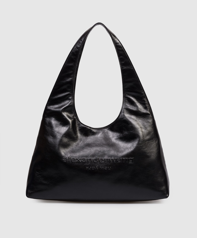 Черная кожаная сумка с фактурным логотипом