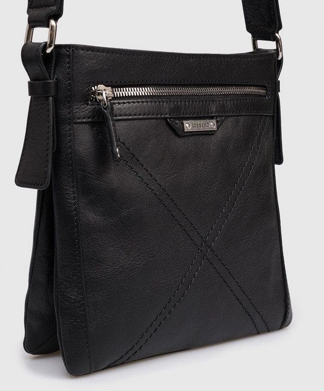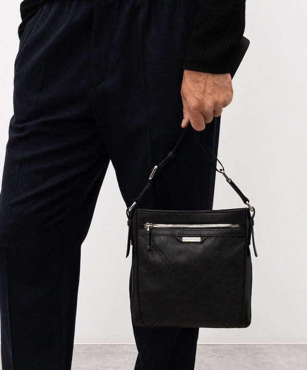 Черная кожаная сумка с логотипом