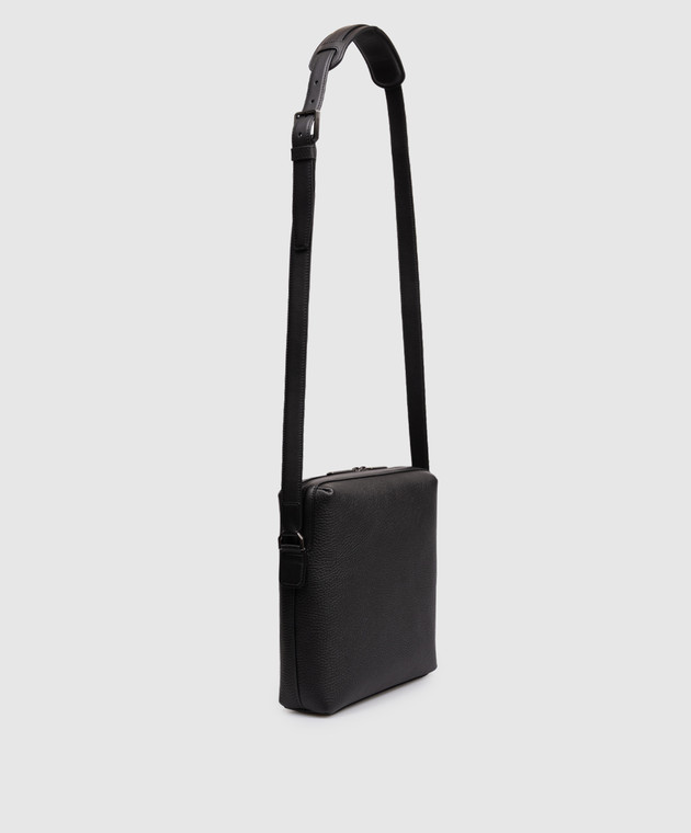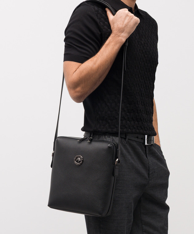 Черная кожаная сумка с металлической эмблемой