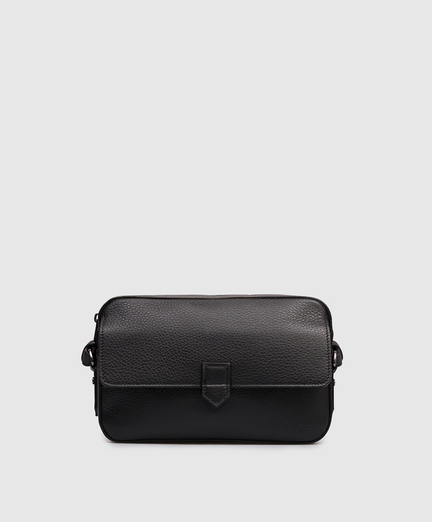 Черная кожаная сумка с тиснением логотипа