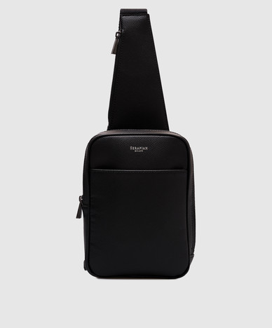 Черная кожаная сумка-слинг EVOLUZIONE с логотипом
