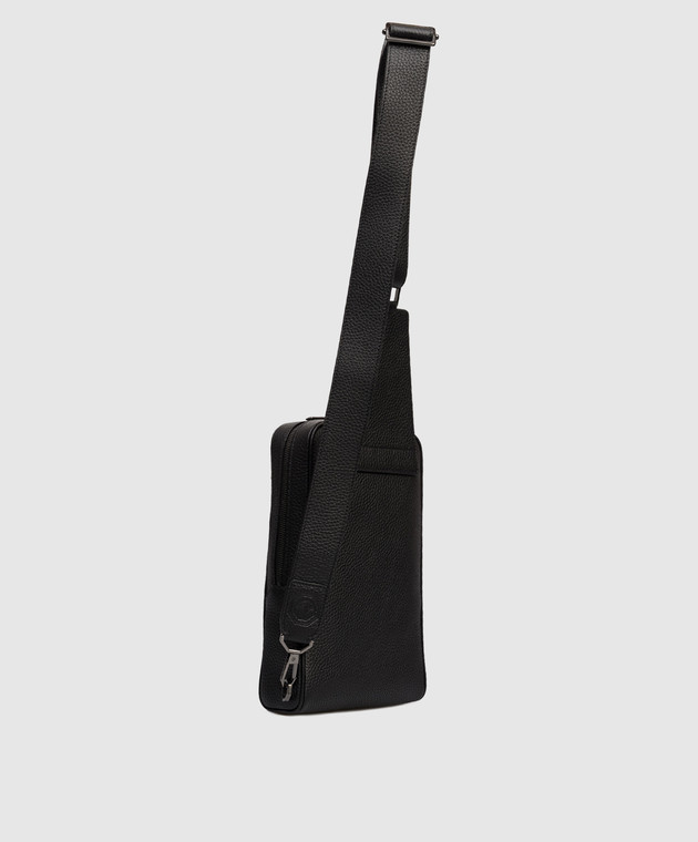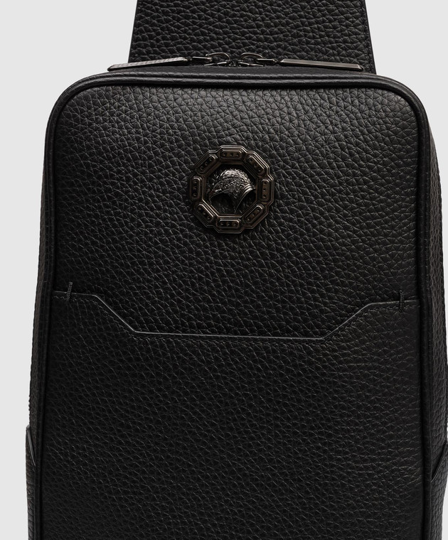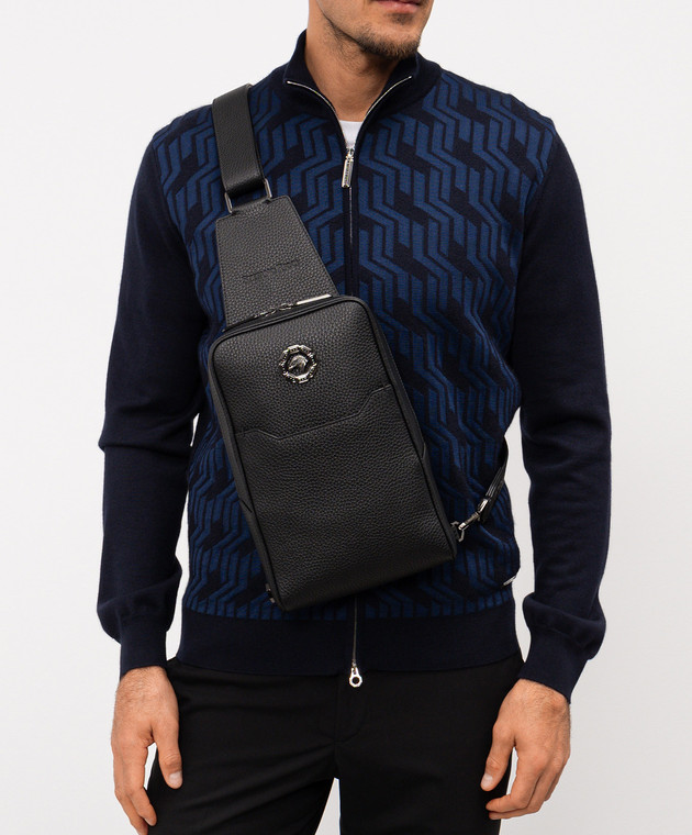 Черная кожаная сумка-слинг с логотипом и эмблемой
