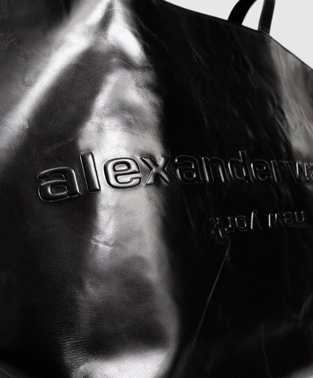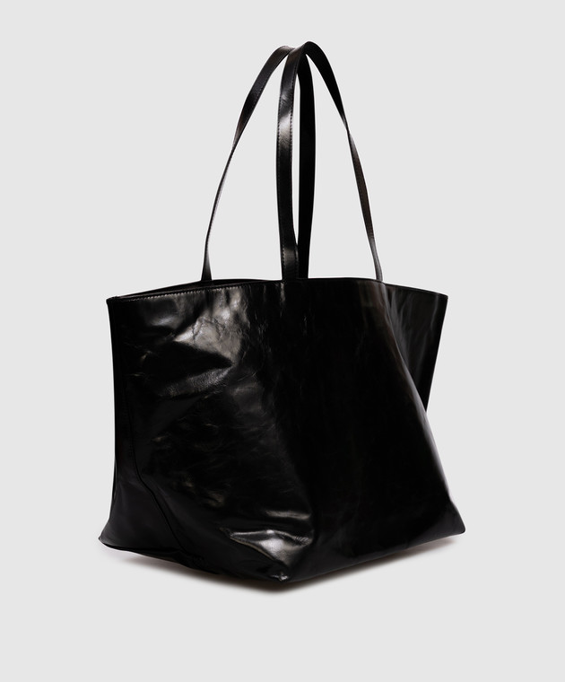 Черная кожаная сумка-тоут с фактурным логотипом