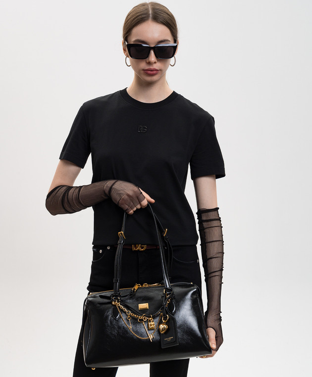 Черная кожаная сумка-тоут Vittoria с логотипом