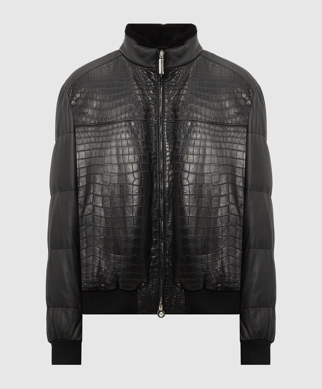 Черная пуховая куртка из кожи оленя и крокодила с мехом норки