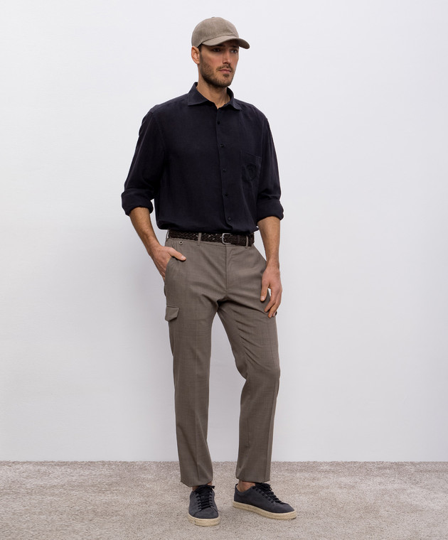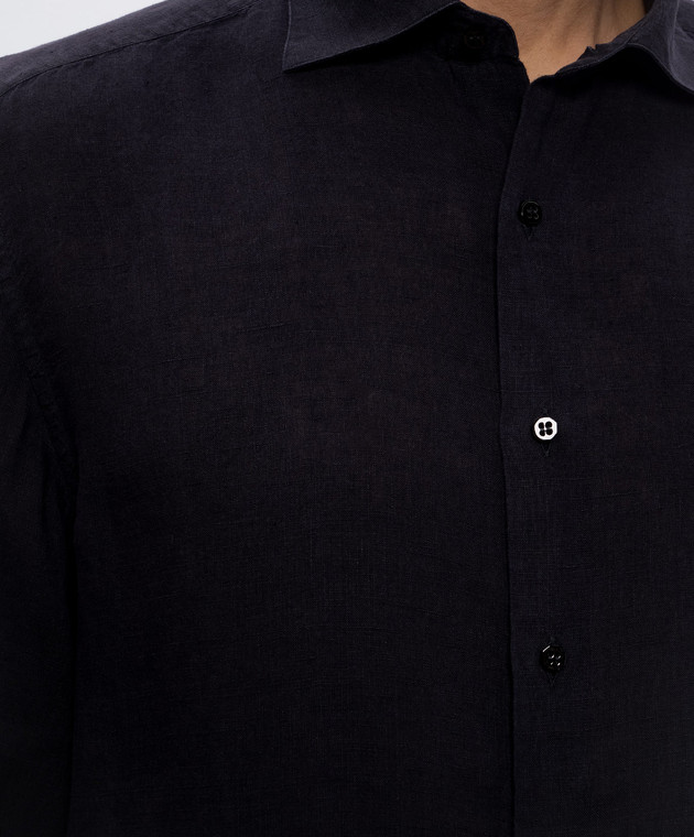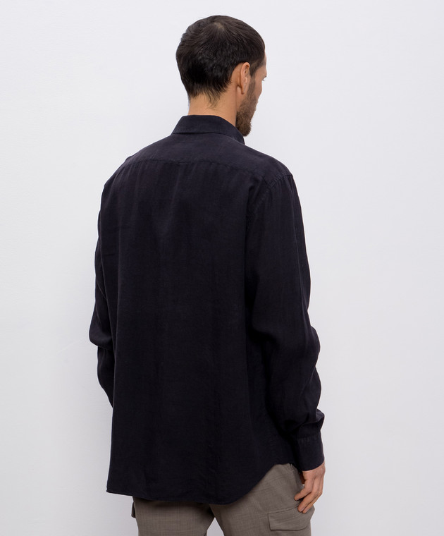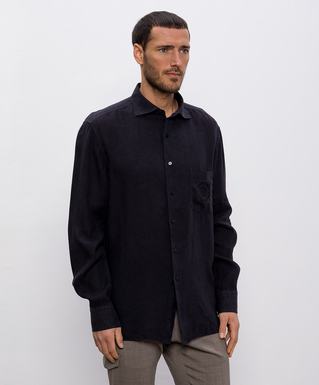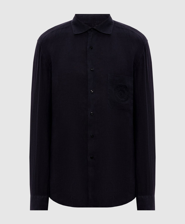 Синяя рубашка из льна с вышивкой логотипа монограммы