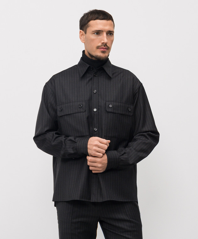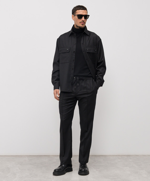 Черная рубашка из шерсти в полоску