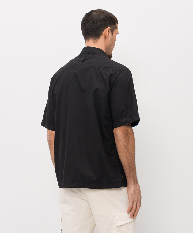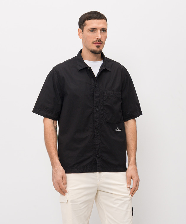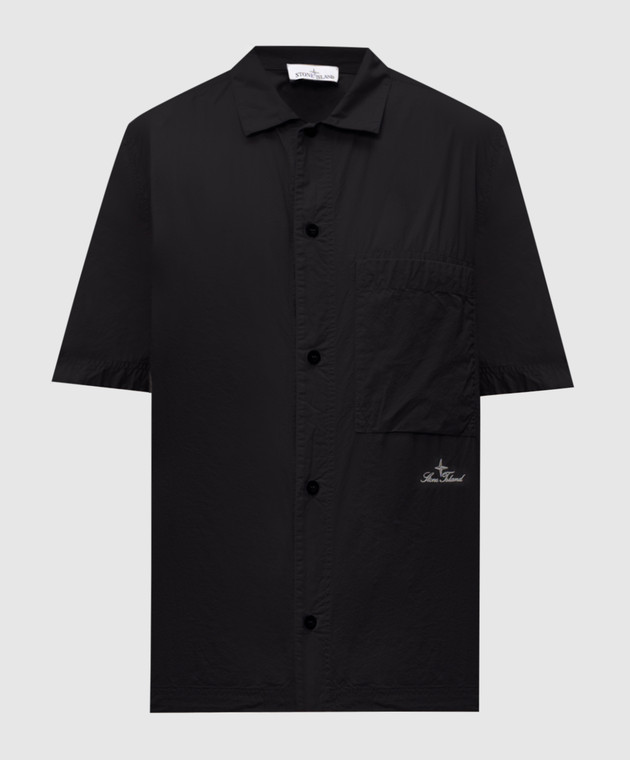 Черная рубашка прямого кроя с контрастной вышивкой логотипа