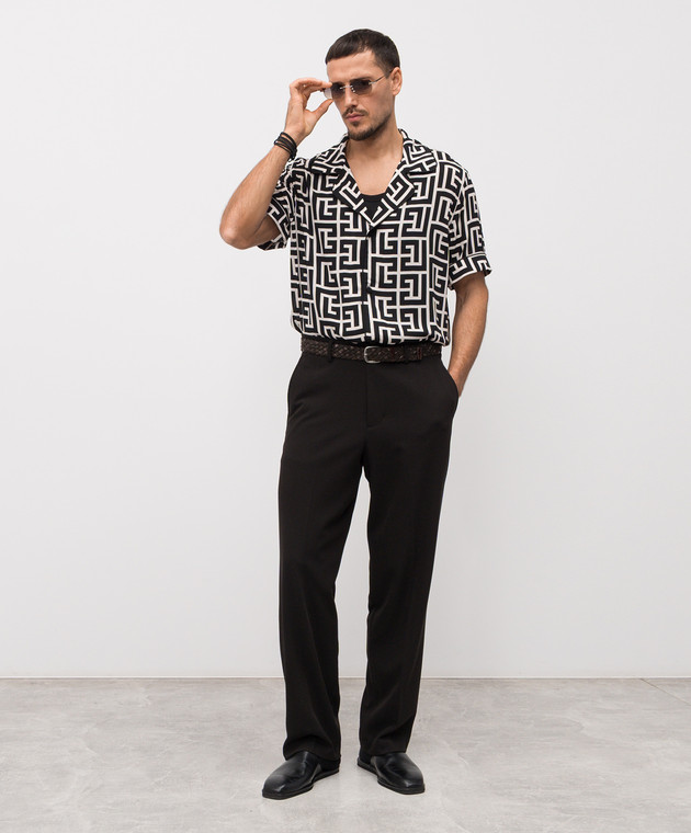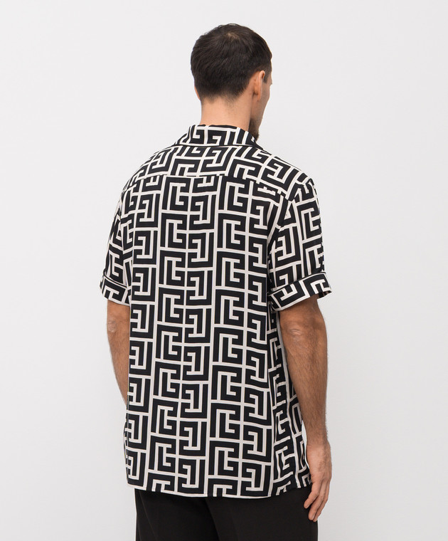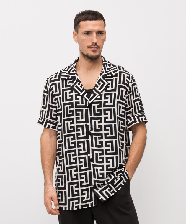 Черная рубашка в брендовый принт