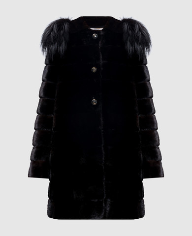 Черная шуба из овчины и меха норки с укороченными рукавами