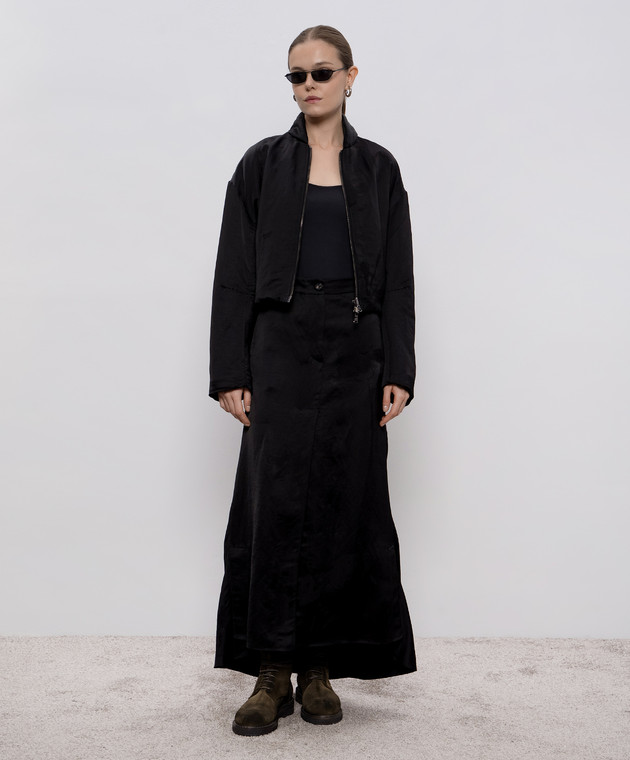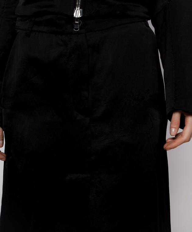 • Декор шлицы, цветочный узор, асимметричный низ, необработанные края, блестящая текстура.