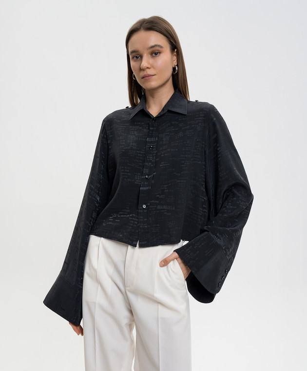 Черная укороченная блузка в узоре