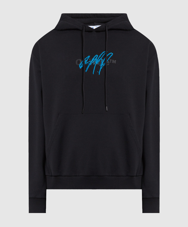 Черное худи с принтом и вышивкой логотипа