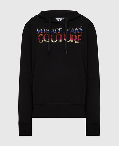 Черное худи с вышивкой логотипа