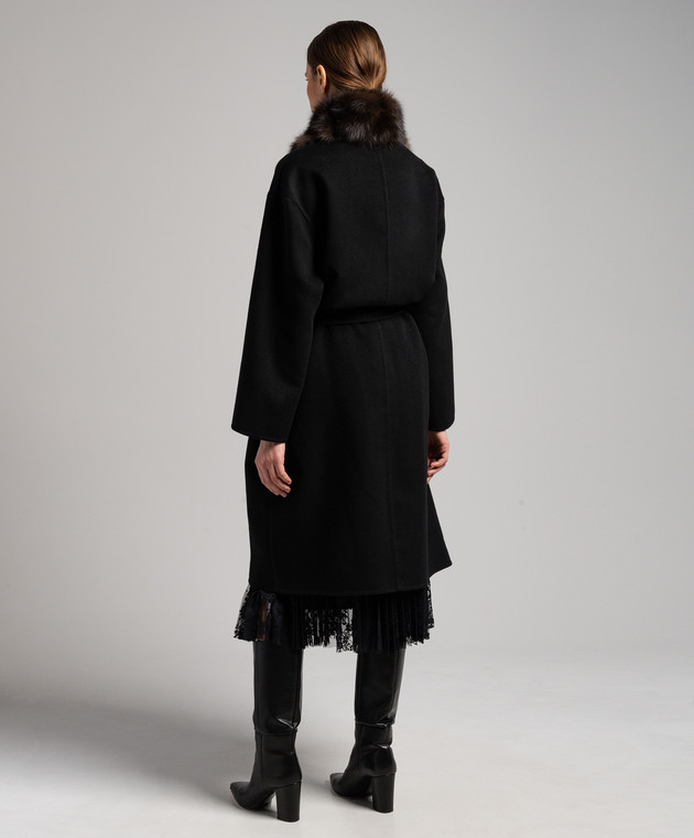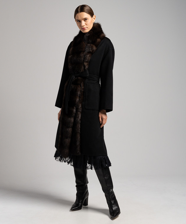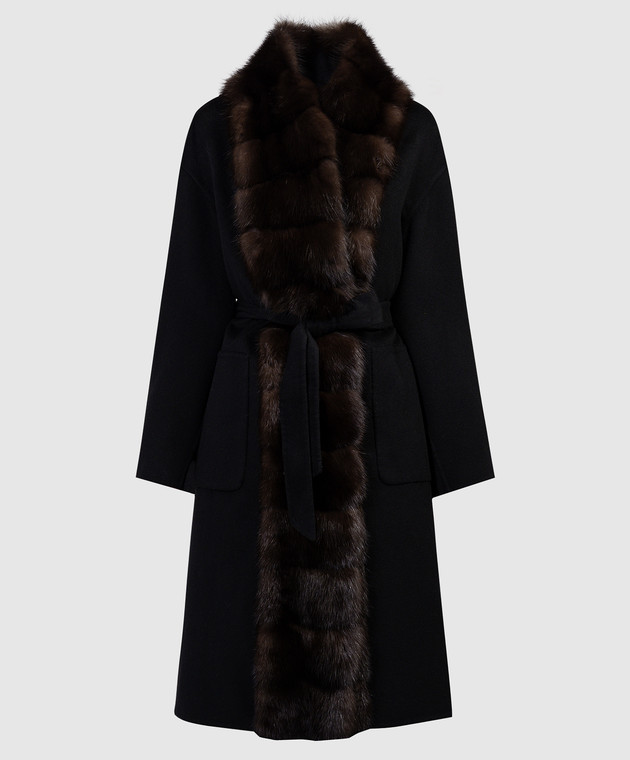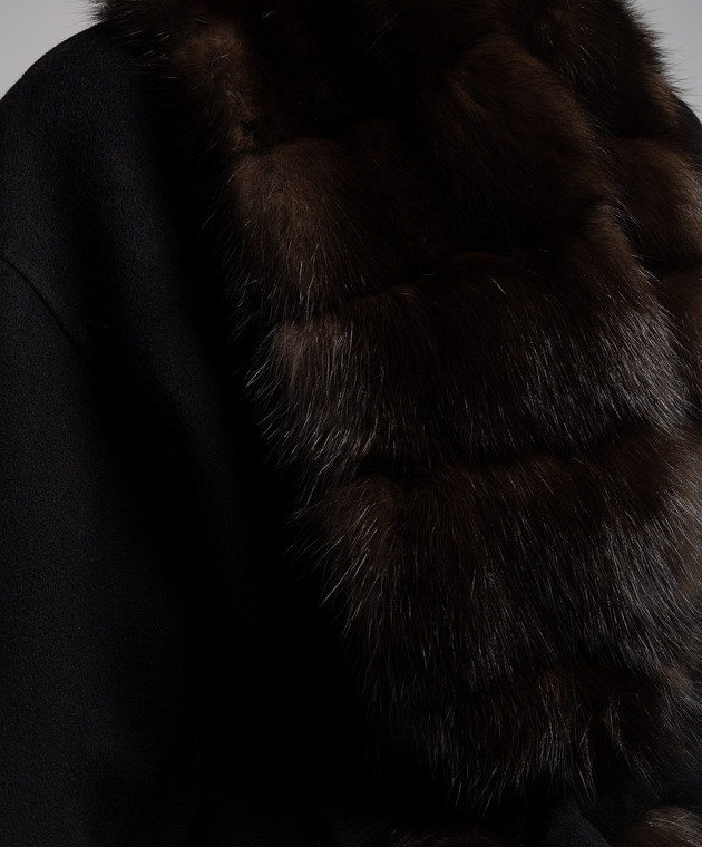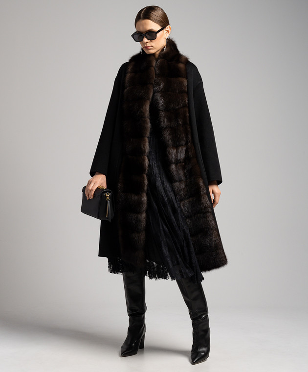 Черное пальто из шерсти и кашемира с мехом соболя