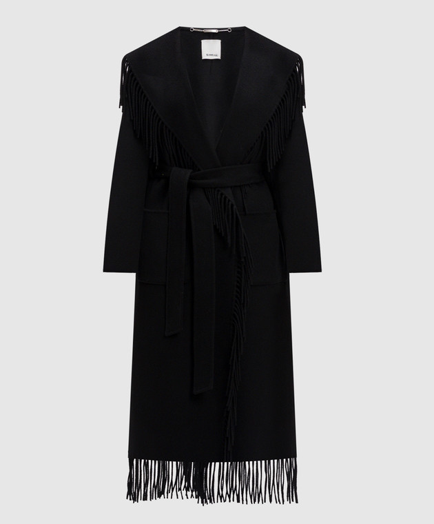 Черное пальто на запах Carrie с бахромой с шерстью