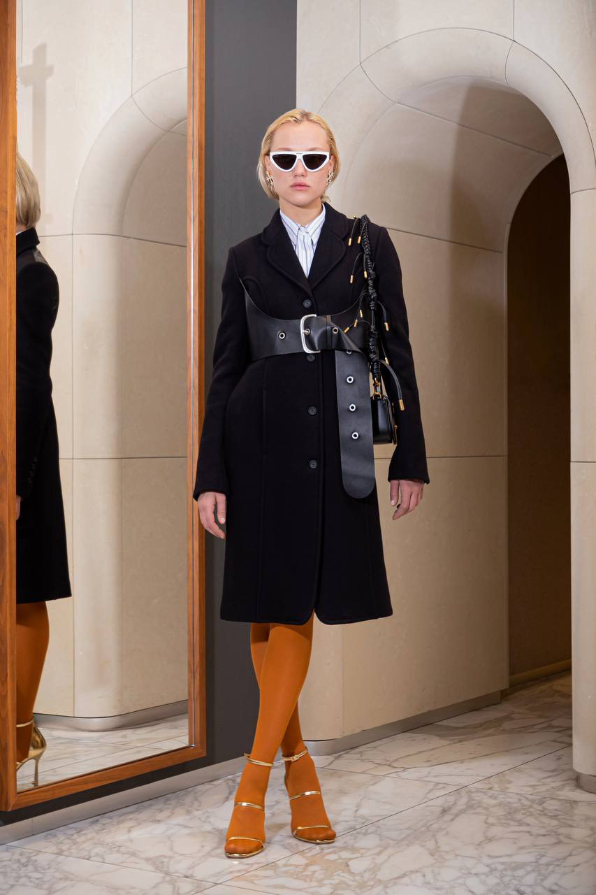• Декор вшитая кожаная кокетка на регулируемом поясе, акцентные швы