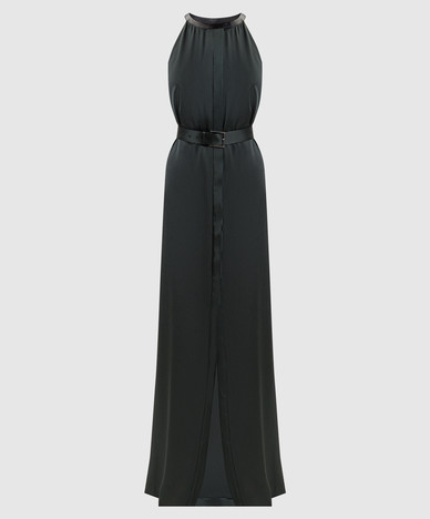 Черное платье асимметричного кроя с логотипом