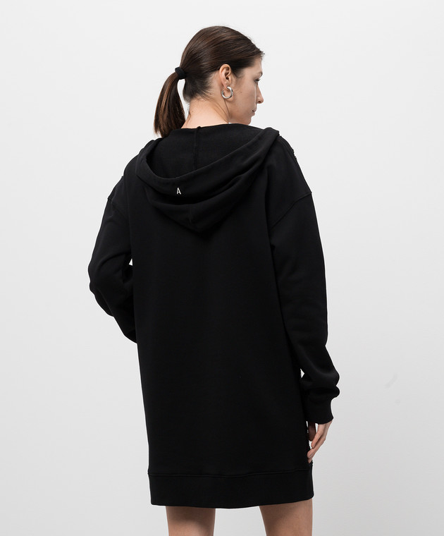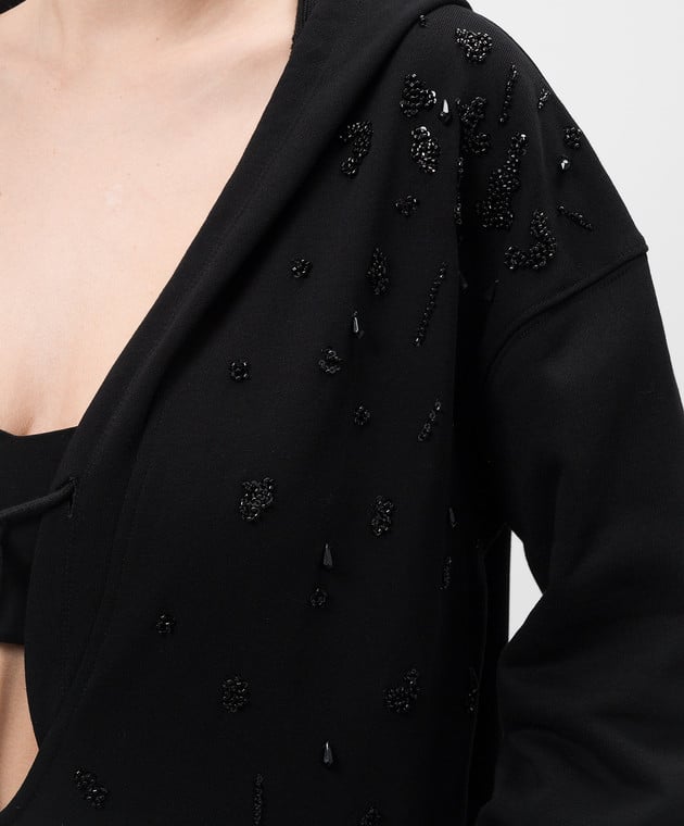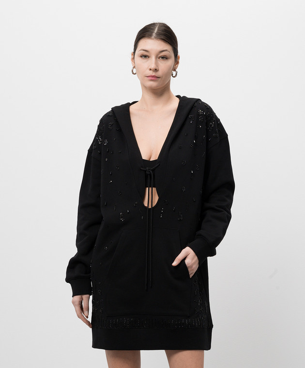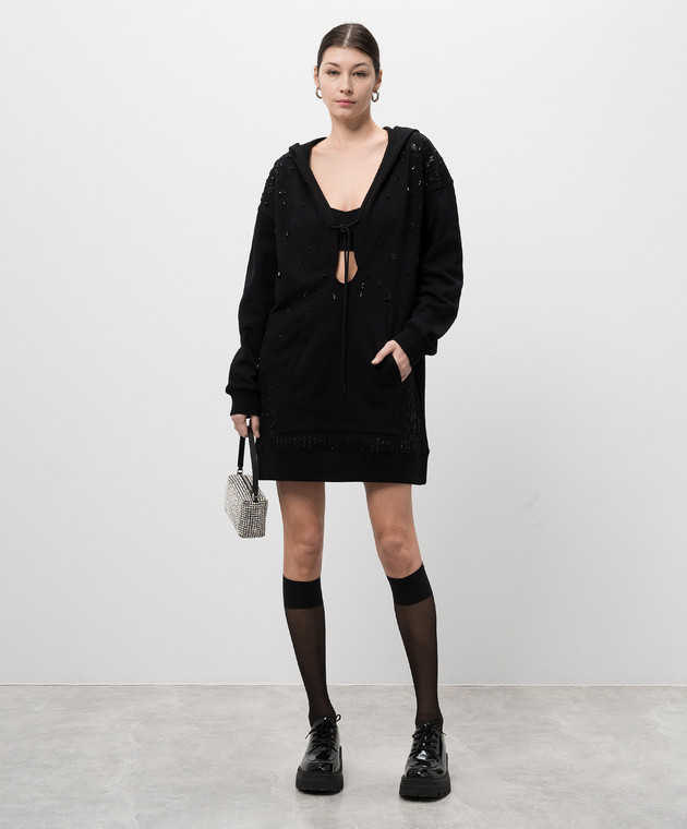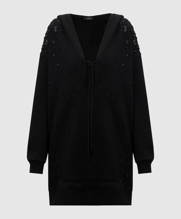 Черное платье-худи с бусинами