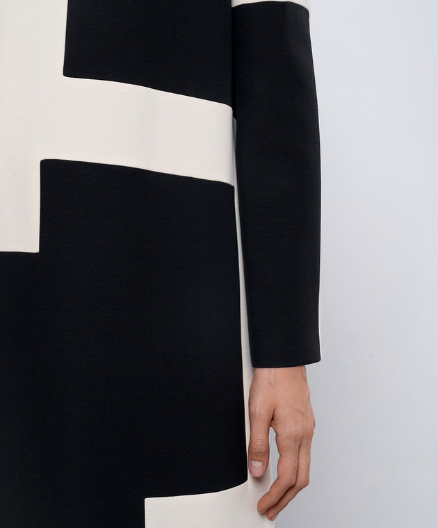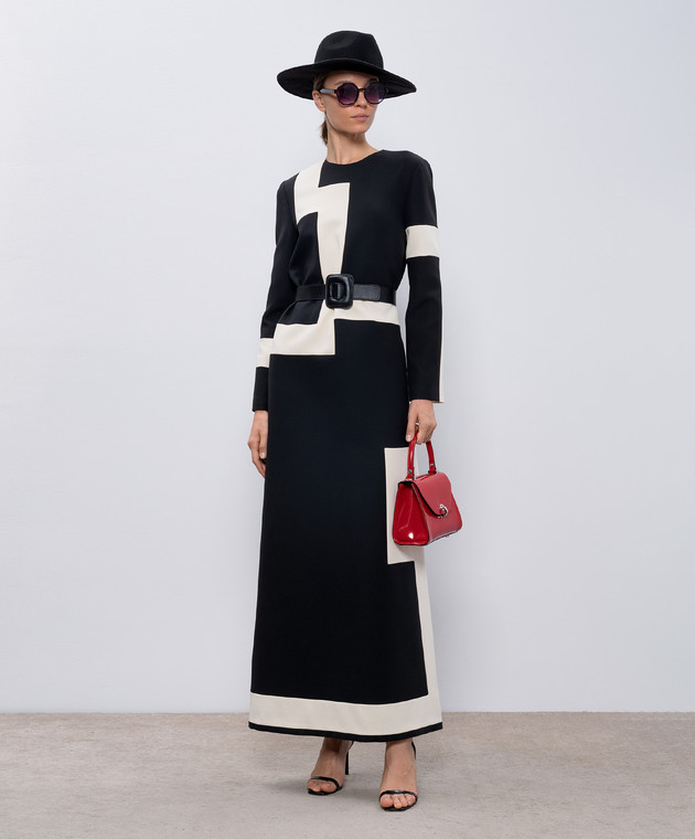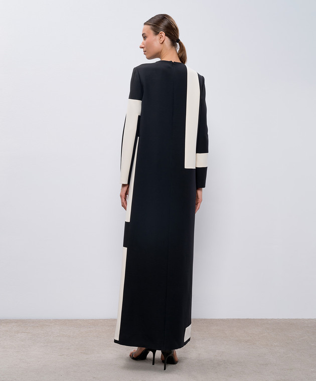 Черное платье макси из шерсти и шелка с контрастным геометрическим узором