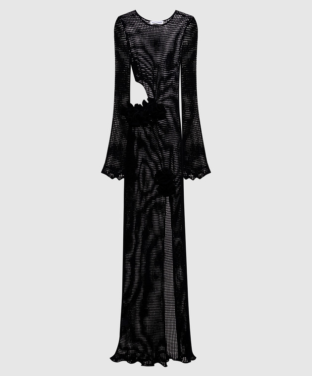 Черное платье макси с апикацией