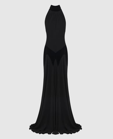 Черное платье макси с цепочкой мониль