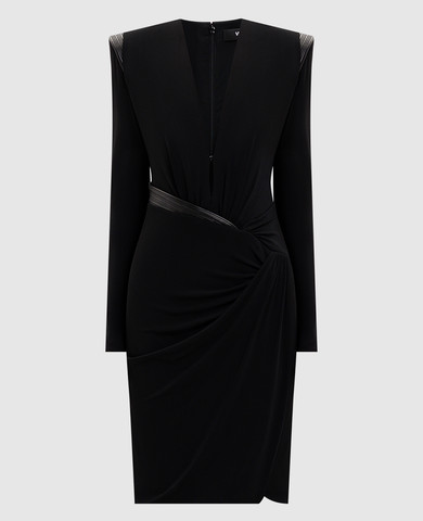 Черное платье мини с фактурной баской