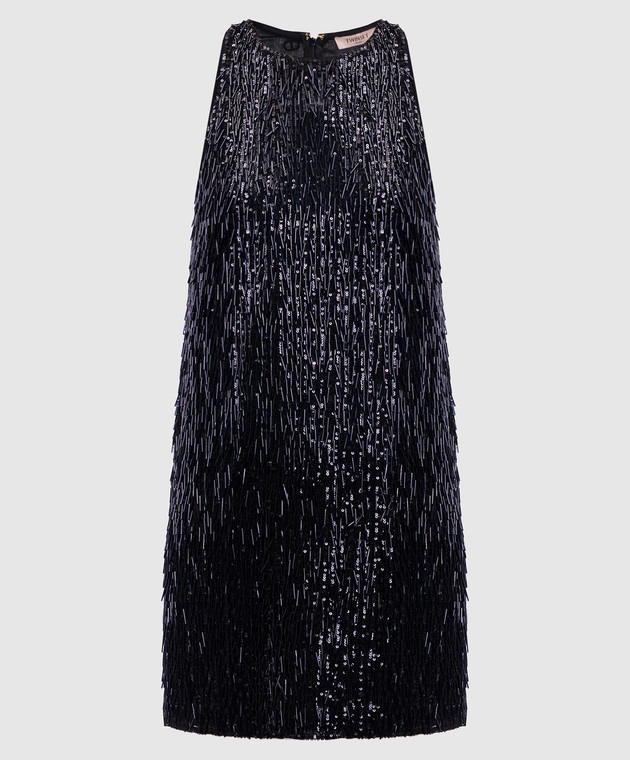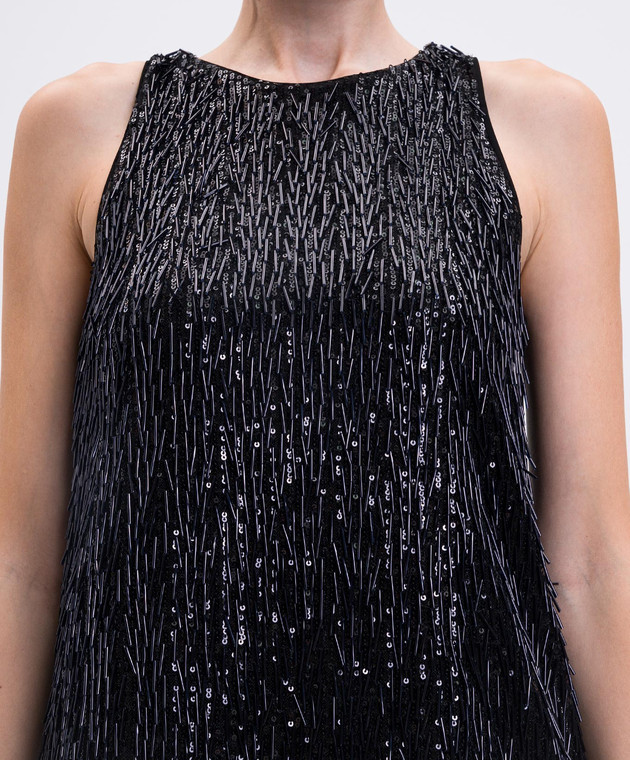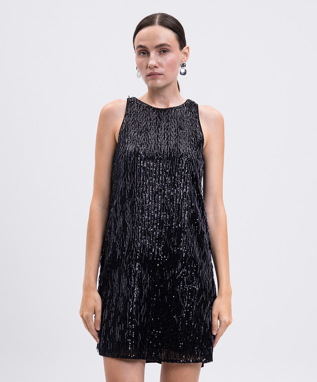Черное платье мини со стеклорусом и пайетками