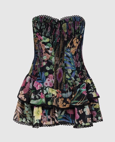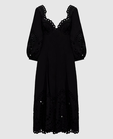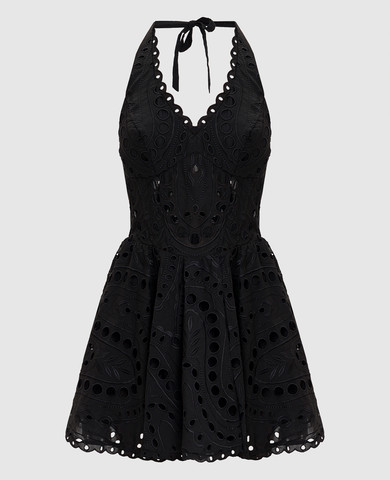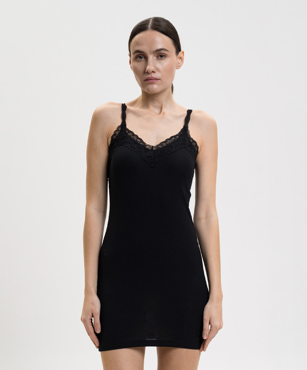 Черное платье мини в рубчик с кружевом