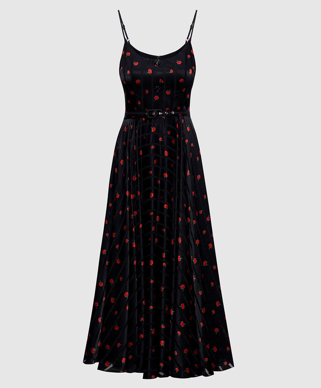 Черное платье в цветочный принт с поясом