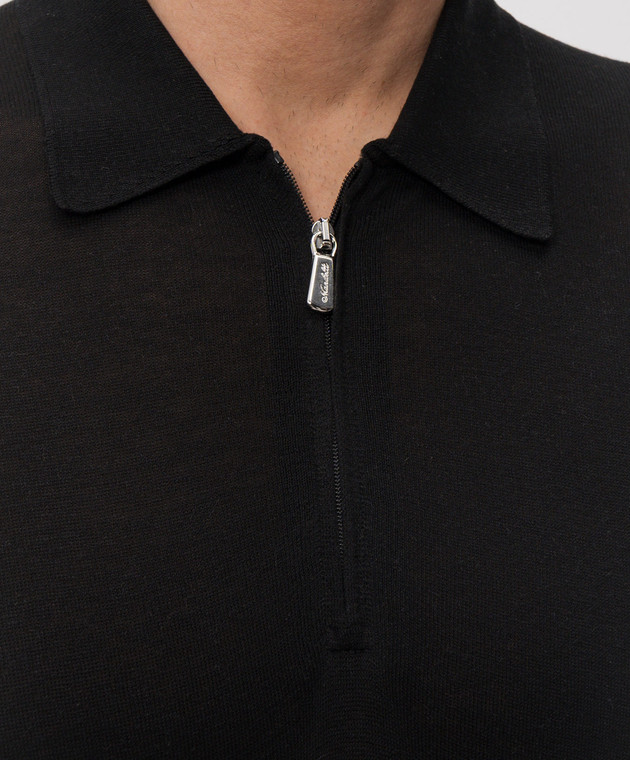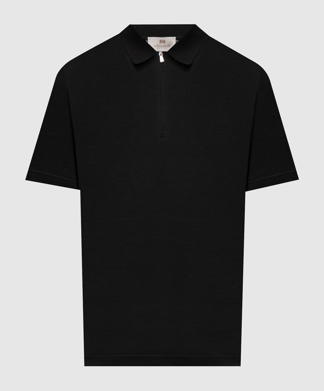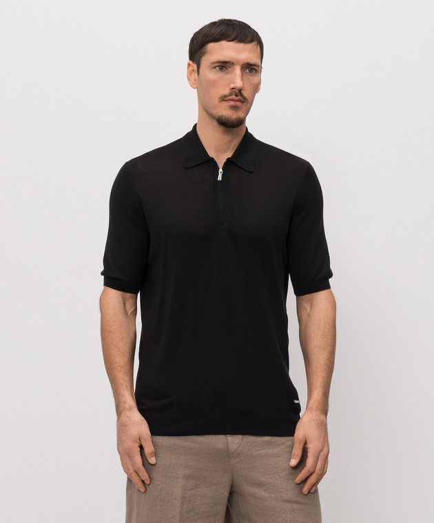 Черное поло из шелка с нашивкой логотипа