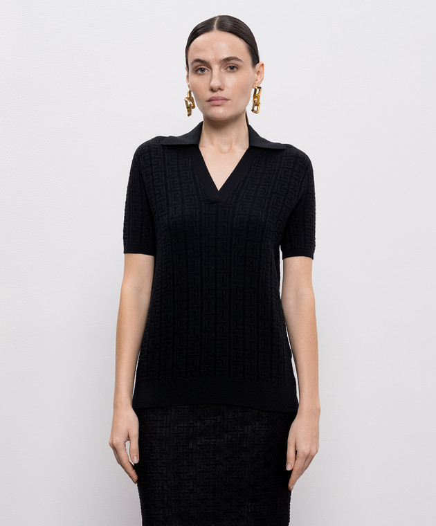 Черное поло из шерсти в узор