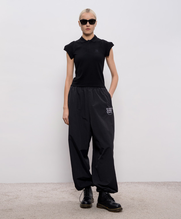 Черное поло с декоративными рукавами