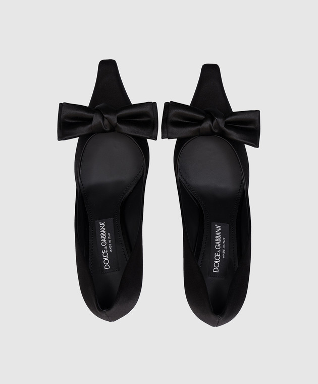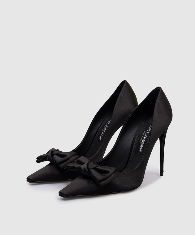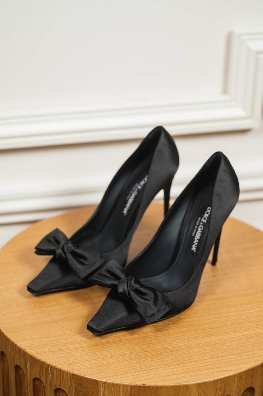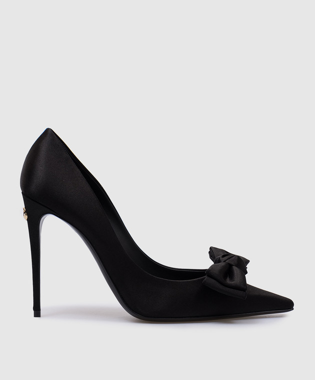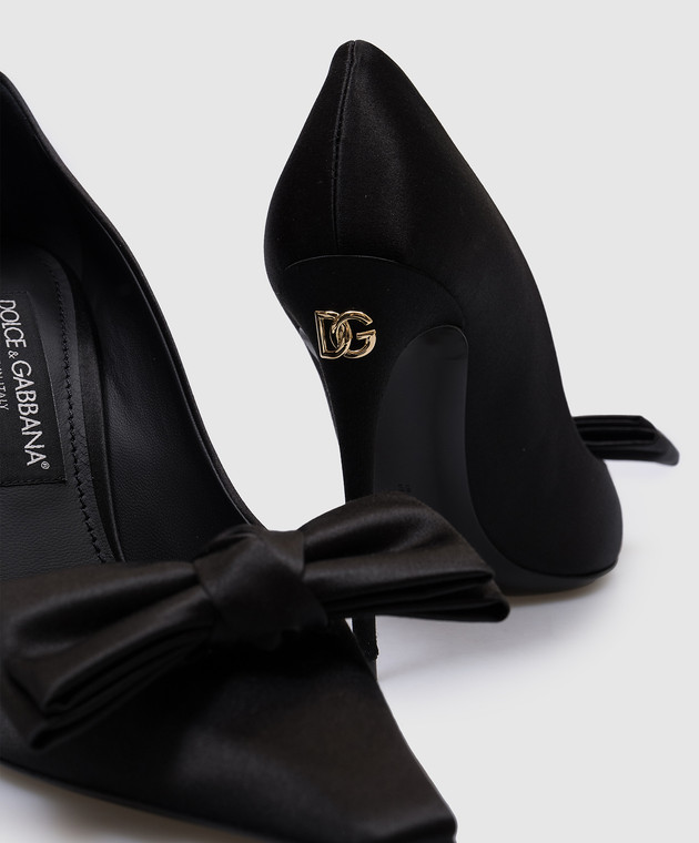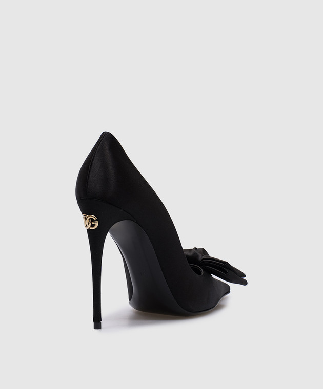 Черные атласные туфли с металлическим логотипом DG