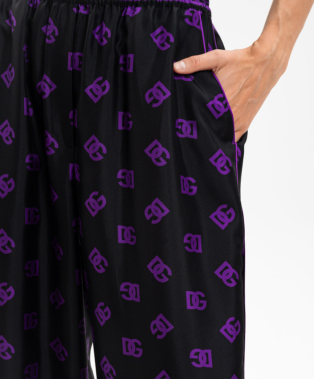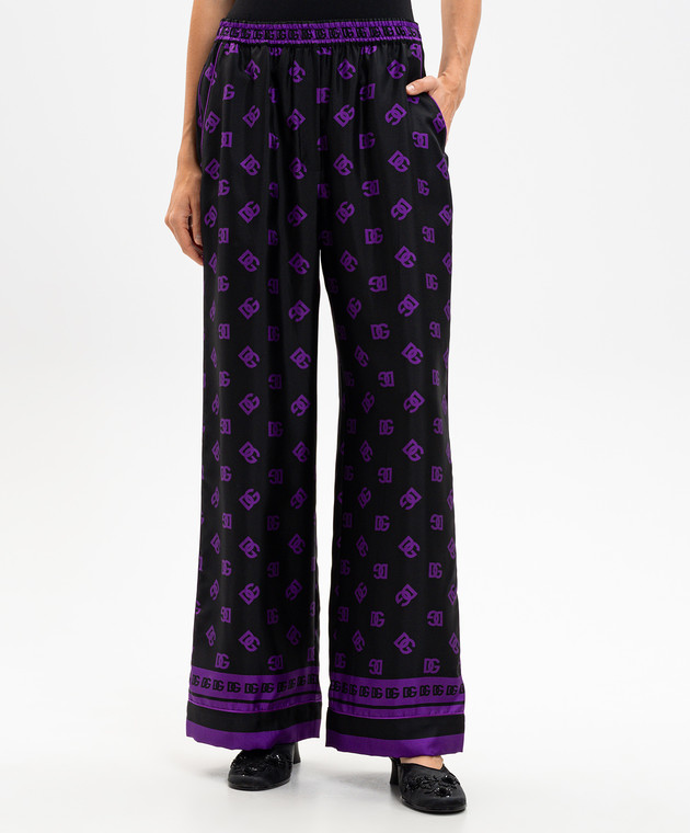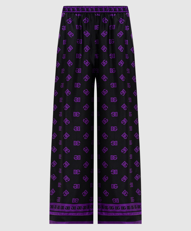 Черные брюки из шелка в логотип шаблон монограммы