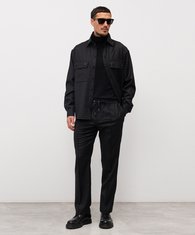 Черные брюки из шерсти в полоску