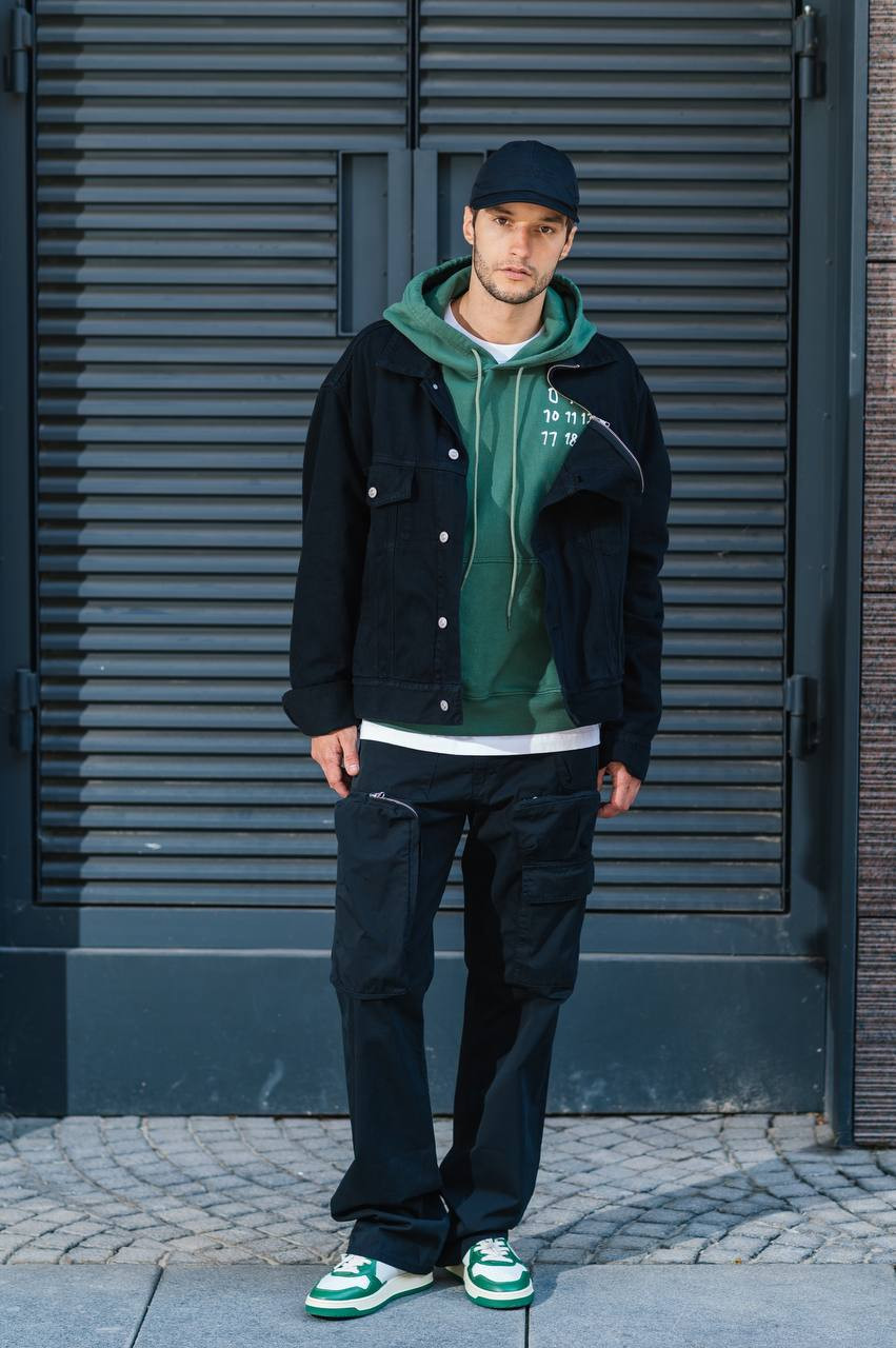 • Карманы три боковых кармана, два накладных кармана, два накладных кармана на молниях, накладной карман с клапаном на кнопках, два задних накладных кармана