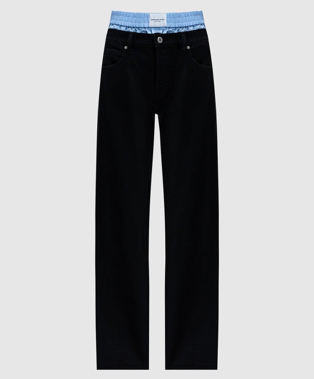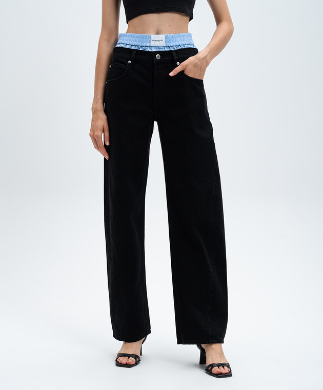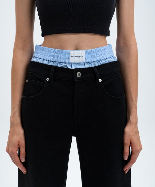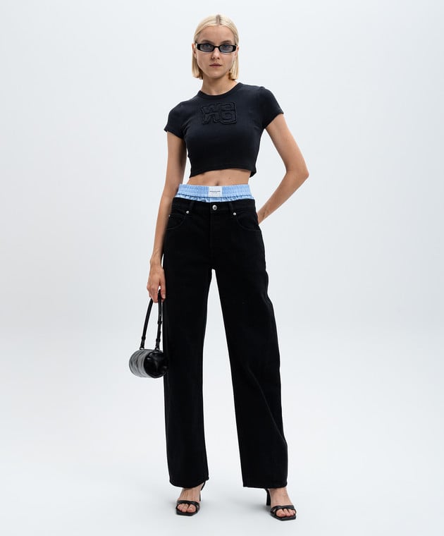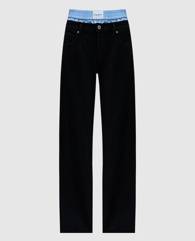 Черные джинсы с эффектом наложения слоев с логотипом