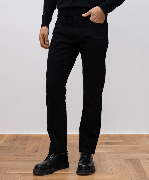 Черные джинсы с кожаным партчем логотипа