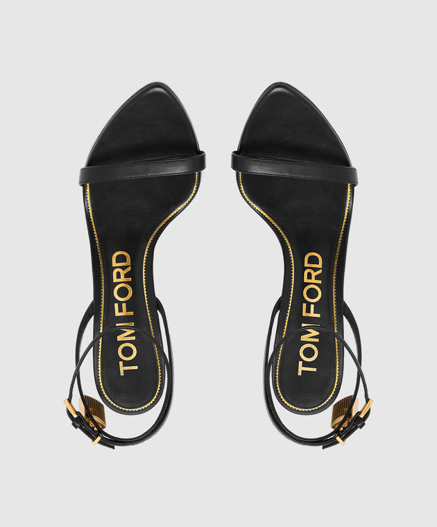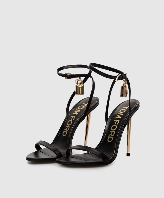 Черные кожаные босоножки с подвеской