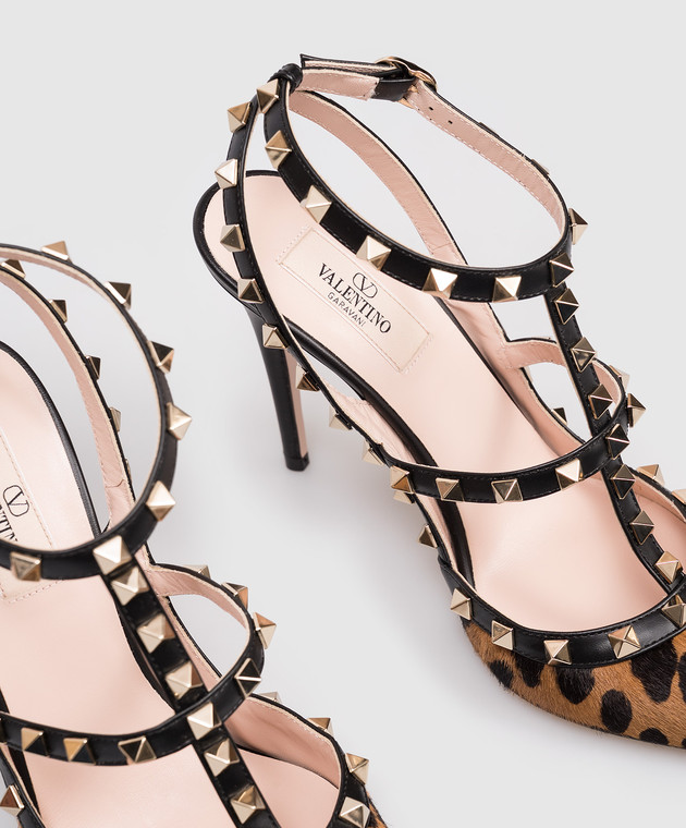 Черные кожаные босоножки в анималистичный принт с пирамидками