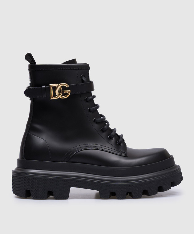 Черные кожаные ботинки с металлическим логотипом DG