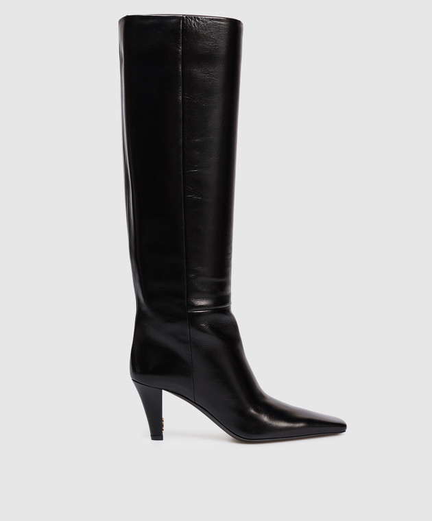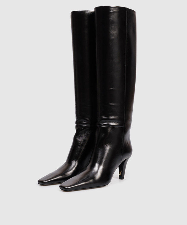 Черные кожаные глянцевые сапоги JILL