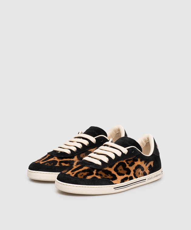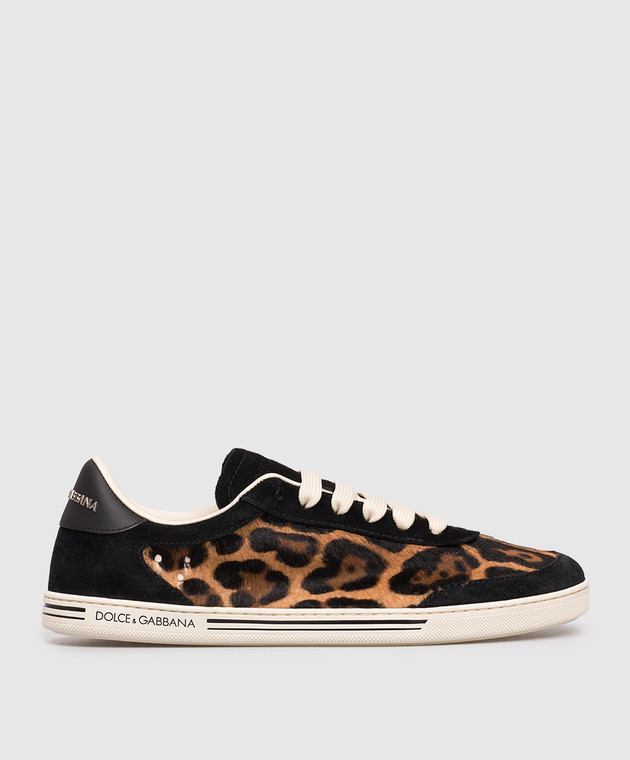 Черные кожаные кеды Saint Tropez в анималистичный принт