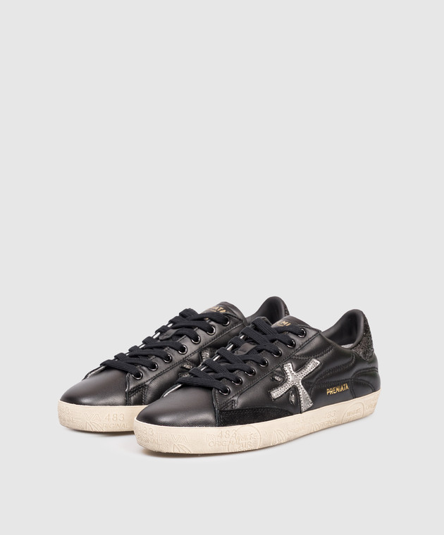 Черные кожаные кеды STEVEND