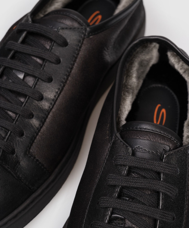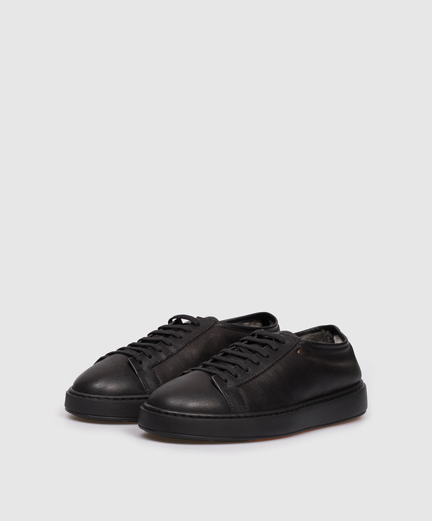 Черные кожаные кроссовки на меху